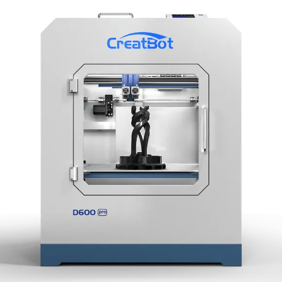 В нашей работе мы применяем принтеры Creatbot D600 pro, обладающие рабочей поверхностью 600х600 мм, и высокотемпературный Creatbot PEEK 300, который может печатать любыми инженерными пластиками, имея при этом рабочую поверхность размером 300х300 мм.